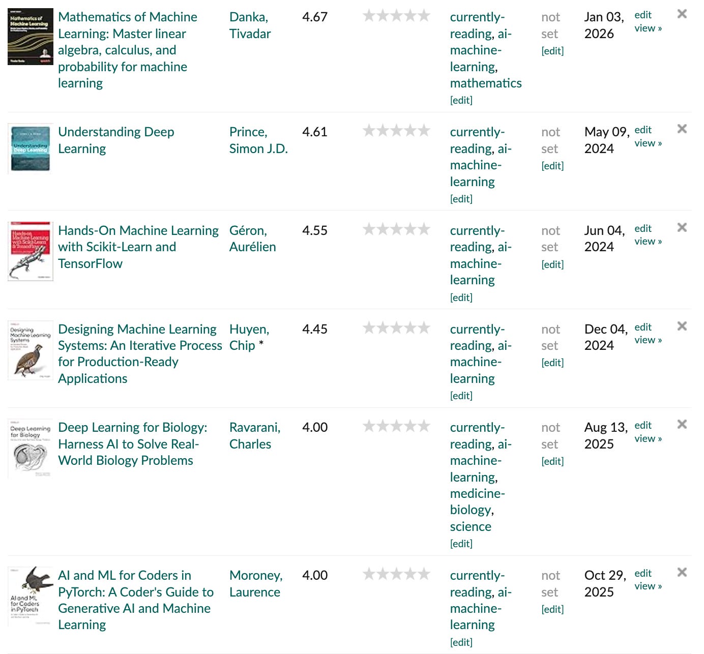 I have ML and mathematics books I've been reading the entire year, but I still haven't finished them. I'm making lots of progress on them, though. It's tough, but I'm enjoying this journey of learning through real technical books.